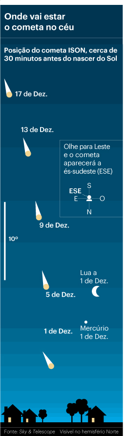 O melhor período para ver o cometa será durante a primeira quinzena de Dezembro. Quem quiser fazê-lo terá de se levantar antes do nascer do sol e olhar para Leste, por cima do local onde o Sol irá aparecer. No início, estará muito perto do horizonte. Mas à medida que os dias passarem, o cometa surgirá cada vez mais alto no céu, ainda que com menos brilho, já que se afasta do calor do Sol. A 26 de Dezembro, passará mais perto da Terra, sem qualquer perigo de colisão.